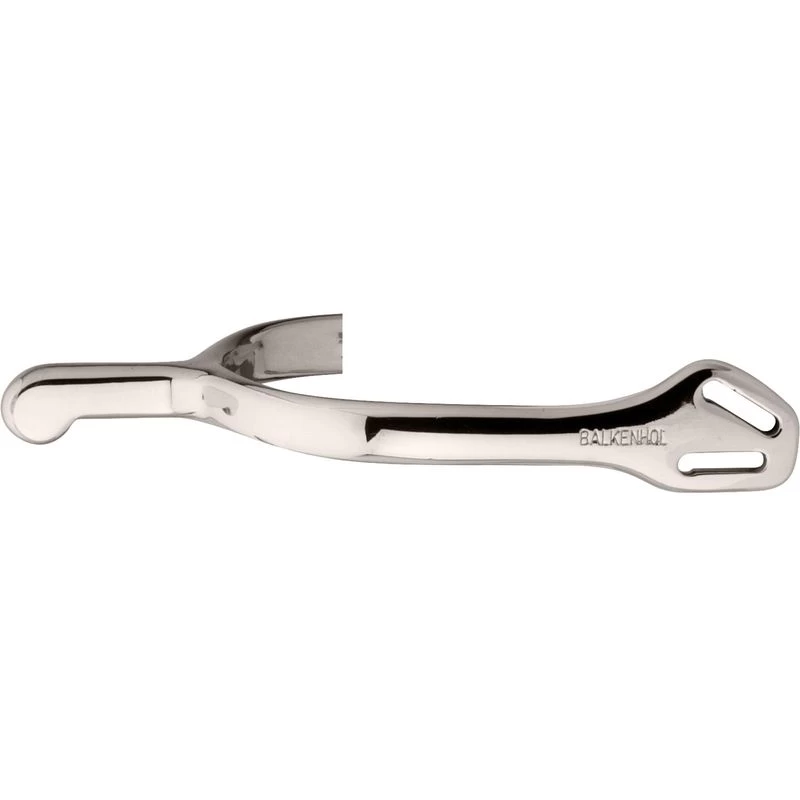 With an elegant fastening developed in cooperation with Klaus Balkenhol, this spur fits perfectly on your riding boots. The innovative design of the Balkenhol fastening features a unique strap loop with an outwardly flared center bar to allow the spur strap to pass the boot on the inside for a comfortable and secure fit without pinching or slipping. Features include a 35mm rounded neck measuring 1 3/8-inch with no rowel.