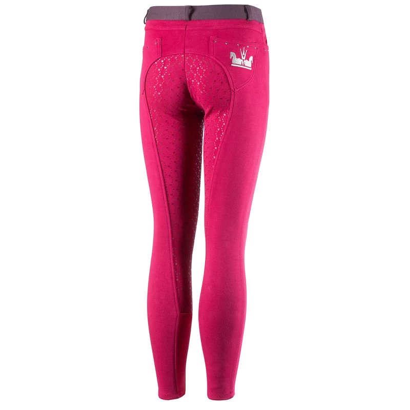 Designed with crystal embellished pockets to make these breeches a bit fancy and silicone print with a fun hearts-and-stars motif. The knitted cotton fabric is soft and stretchy, so pulling them on won’t be hard work. A high waist ensures your young equestrian will ride in comfort.