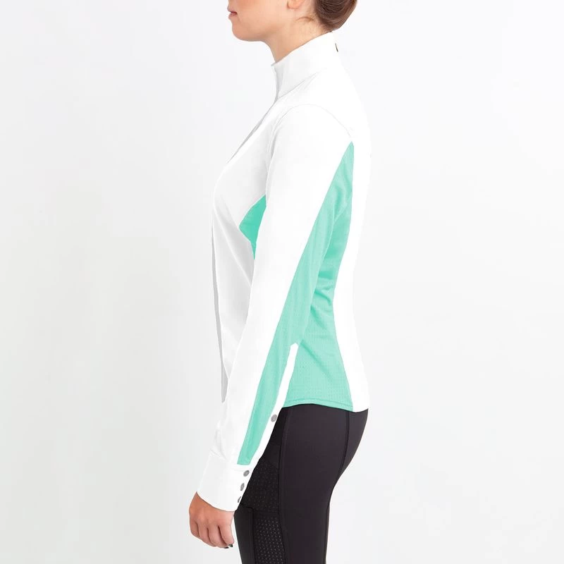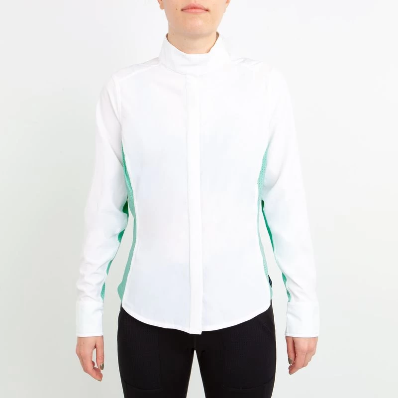 Irideon Kids’ Athena Long Sleeve Show Shirt – Bright White/Island Green