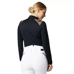 Horze Women’s Sianna Long Sleeved Show Shirt W/ Lace Shoulders – Dark Navy